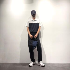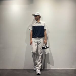 シャツとロングパンツは、ゴルフの王道