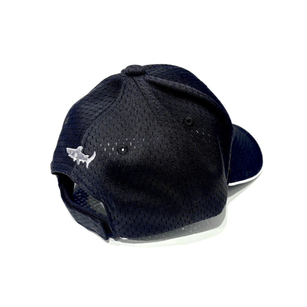 その中央にブランドアイコン Victor(サメ) をサンドした刺繍デザイン。